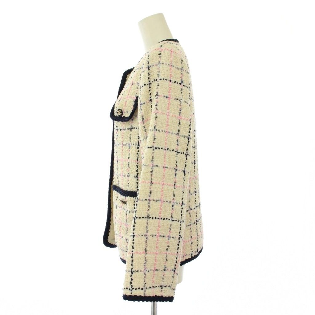 シャネル CHANEL uniform ノー ジャケット アウター ショート丈 ツイード ココボタン ココマーク ロゴ チェック柄 ウール シルク 36 アイボリー BB