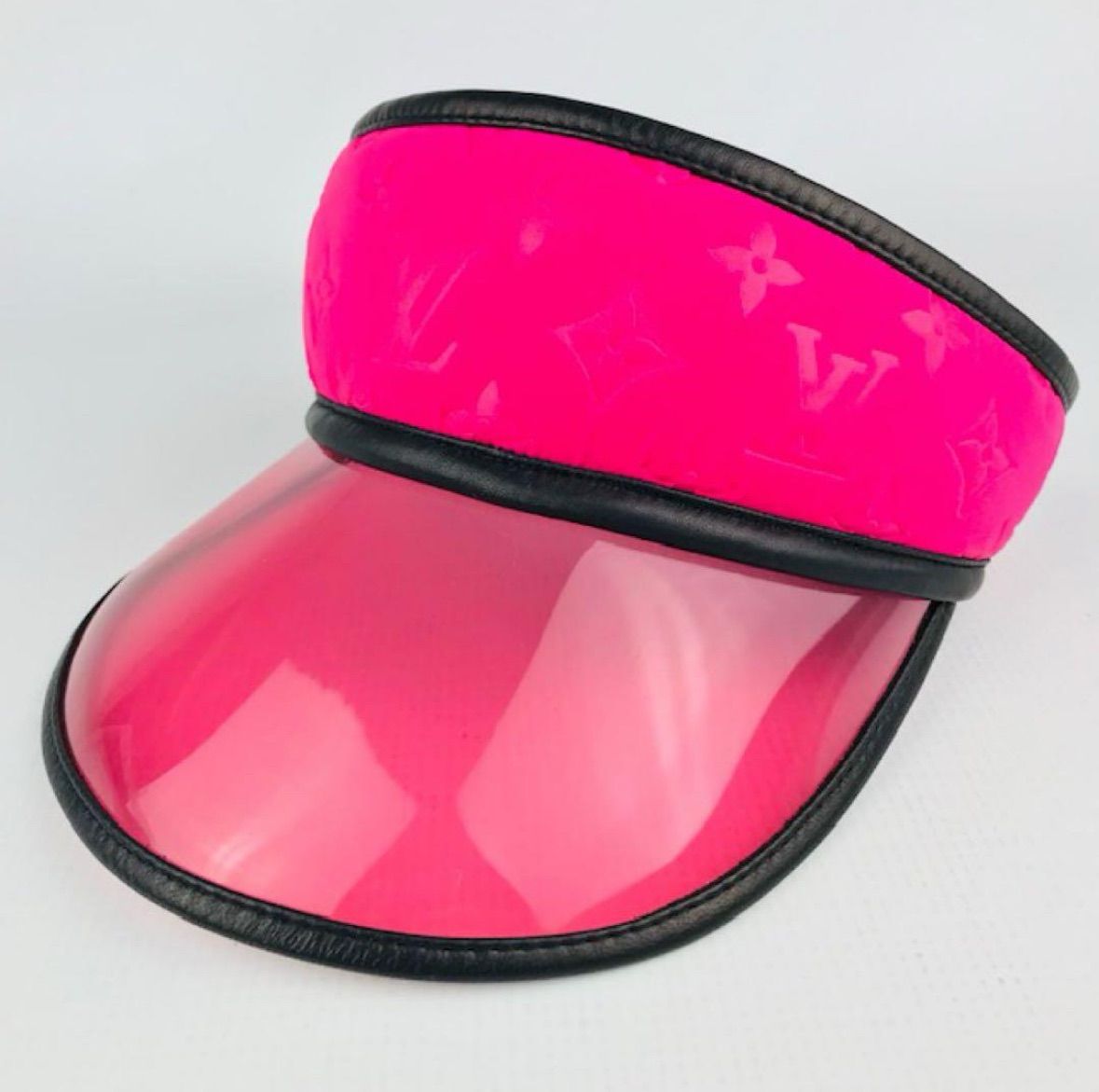 LOUIS VUITTON ルイヴィトン レディース レザー ナイロン切替し エンボス加工モノグラム柄 クリア サンバイザー ブランド フランス製 ピンク