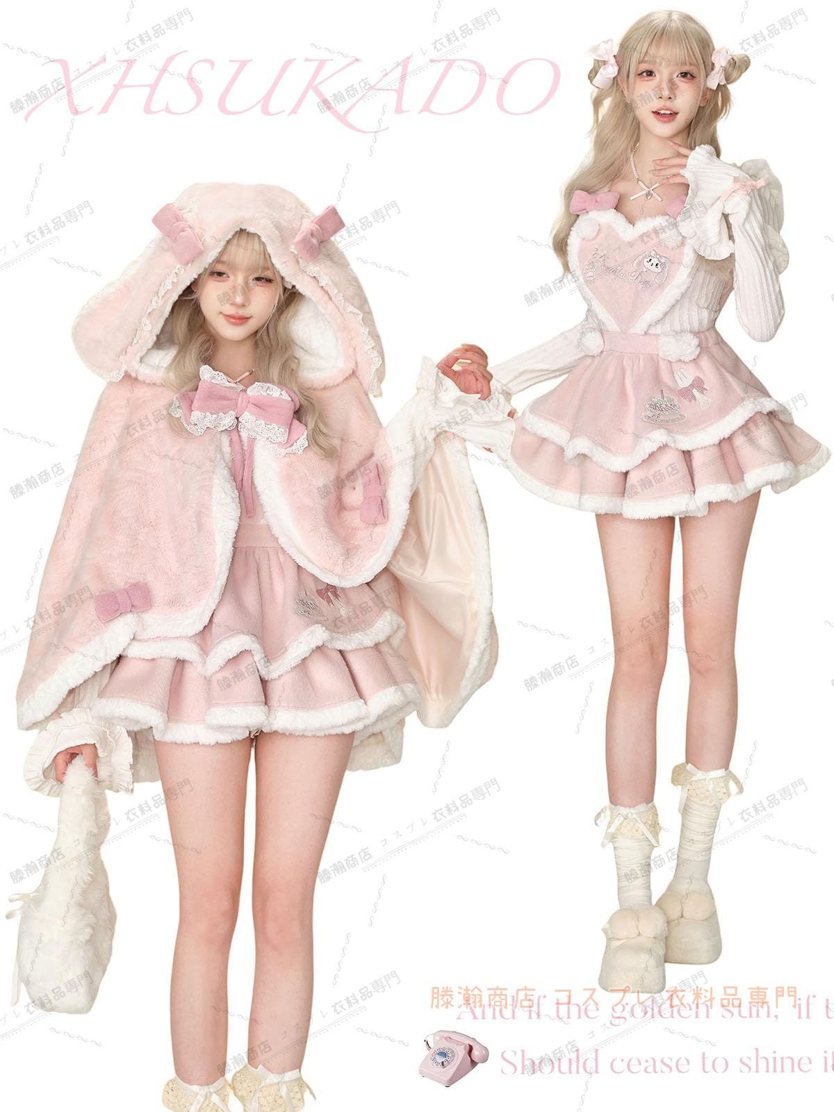 【3点セット】「コート」+「ブラウス」+「吊りスカートスカート」の3点セットです。(リボンをおくる) 【着る前に注意】フリース生地なので、無駄な抜け毛あが残っていることがございます、一度洗ってから、ご利用ください。 【フリース】毛布のような厚手のふわふわ・もこもことしたフリースを使用しており、手触りが良く、防寒効果も抜群。 【うさ耳】うさ耳のデザインで、おしゃれでセクシーな雰囲気を与えてくれます。 【幅広く活躍】コスプレ用、学園祭、イベント、文化祭、パーティー用、ハロウィン、クリスマスにおすすめです。女子会、デートなど様々なシーンで幅広く活躍中。お洒落で可愛いデザインで、プレゼントとしてもピッタリです。 追加情報