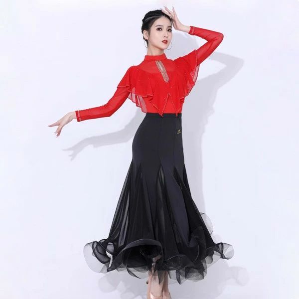 ダンス用 トップス ダンスウェア ダンストップス 透け感 フリル レオタード式 女性用 ラテンダンス レディース 社交ダンス ラテン 衣装 練習用 練習着 競技用グローリーパーク