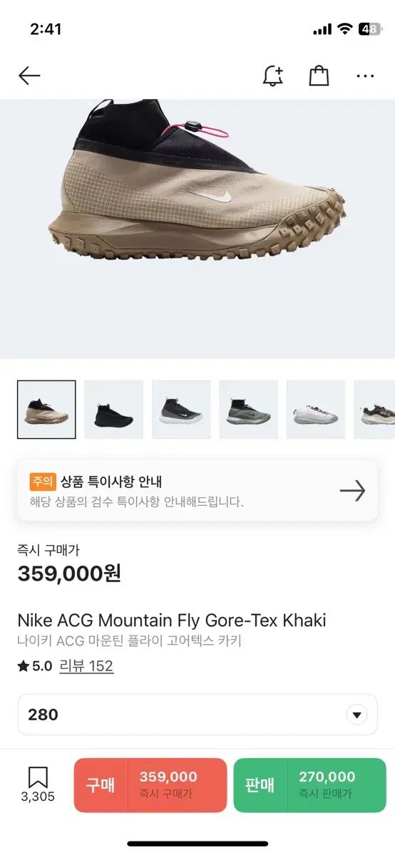 ナイキ ACG マウンテン フライ ゴアテックス カーキ 280