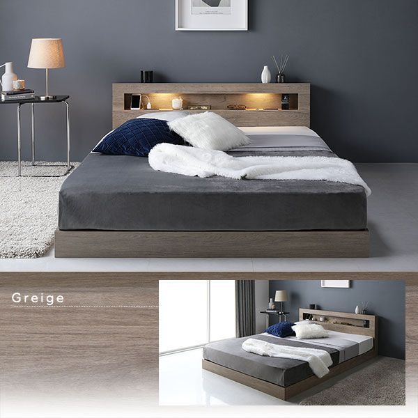 ベッド ダブル 2層ポケットコイルマットレス付 シャビーオーク 低床 照明 コンセント 宮付 宮棚付 棚付 すのこ ロータイプ ベッドフレーム ローベッド すのこベッド フロアベッド ベット すのこベット 寝具 インテリア家具 ベッドルーム 寝室