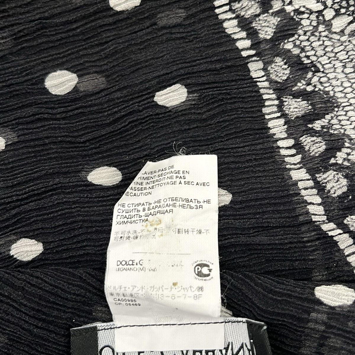 DOLCE-GABBANA ドルチェアンドガッバーナ ストール ショール - 黒×ライトグレー ドット柄 シルク