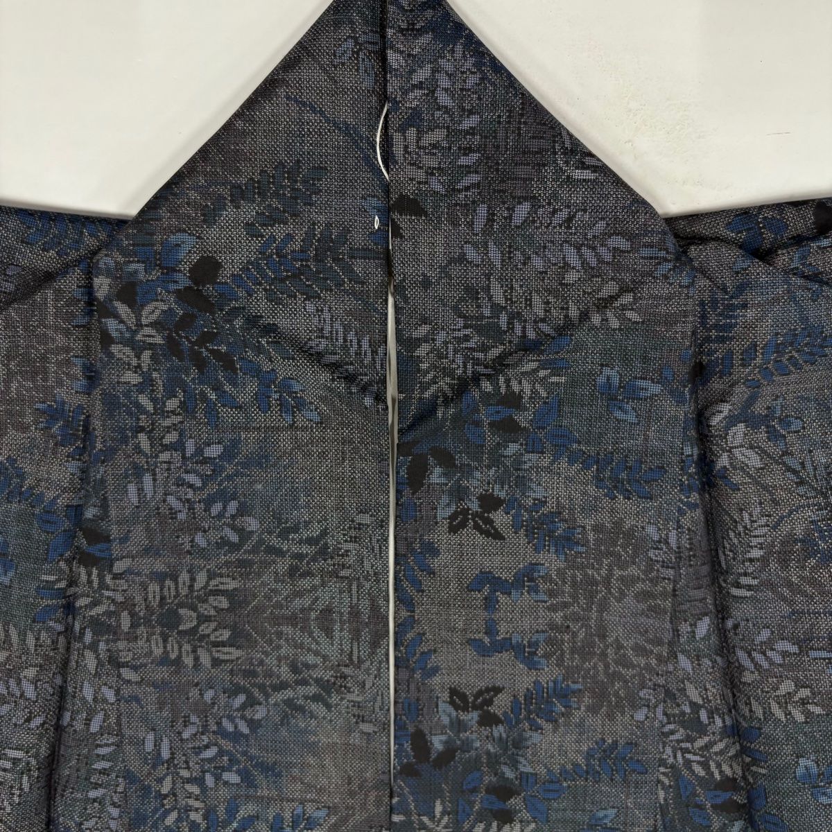 紬 身丈155 cm 裄丈63 S 袷 葉 シルエット 青灰色 正絹