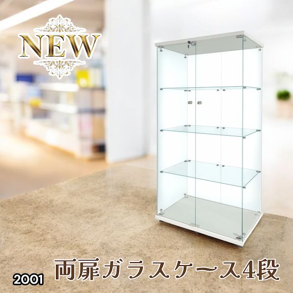 2001 両扉 ガラス ケース 4段 ホワイト 本島 の その他 へは別途配送料有り