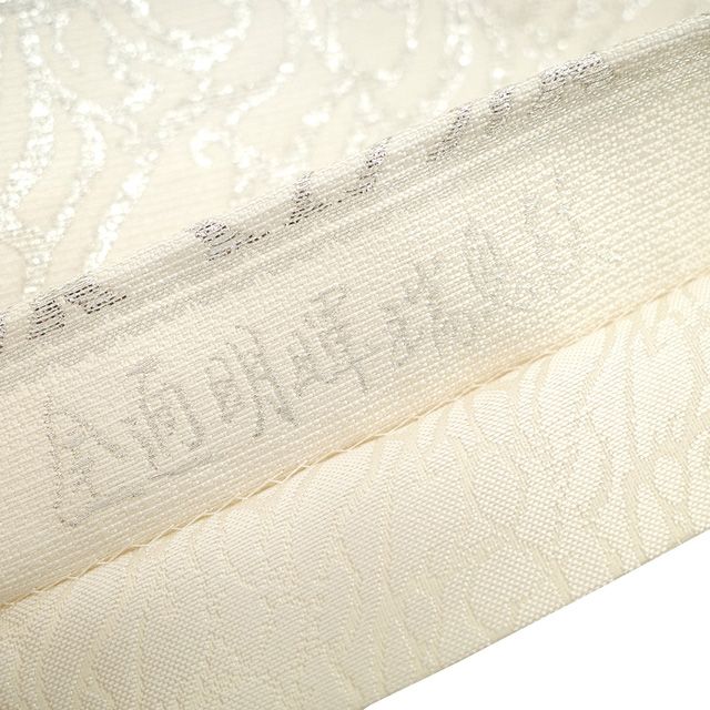 表地は、白地に銀糸で明暉瑞鳥文が織り上げられています。