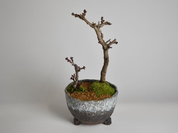 桜と藤の寄植え盆栽 信楽焼 三足青窯変鉢