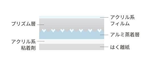 プリズムレンズタイプの再帰性反射材を利用しています。