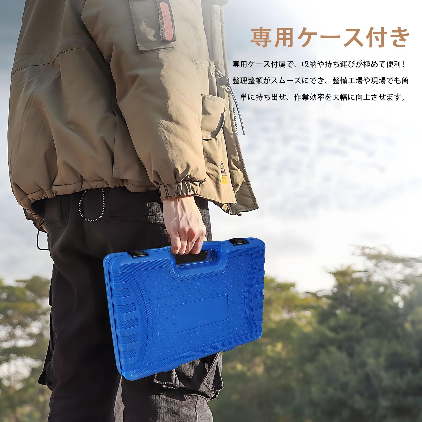 【適用シーン】車両の定期メンテナンスやブッシュ交換作業に最適です。専門の整備工場での使用はもちろん、自宅での車両修理や、ドイットチャレンジを楽しむ自動車愛好家にもおすすめです。さらに、ツールセットは持ち運びが容易なケースに収納されているため、現場での作業や移動作業にも便利です。
