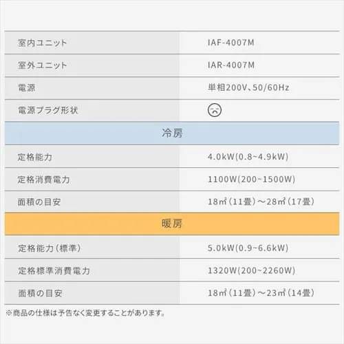 室内ユニット:IAF-4007M