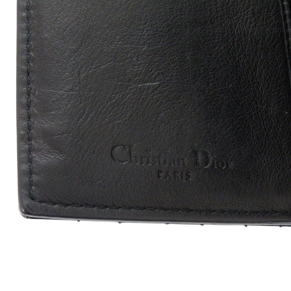 ディオール カナージュ ロゴ チャーム パテントレザー エナメル ブラック ゴールド金具 二つ折り財布 黒 0820 Dior