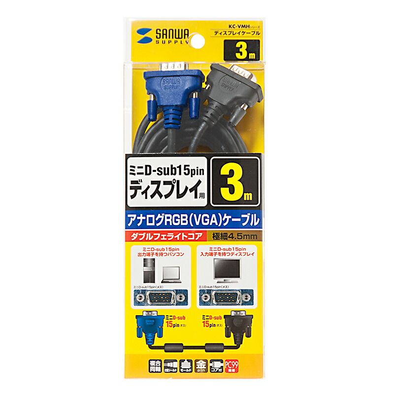 サンワサプライ ディスプレイケーブル KC-VMH 3 K ×