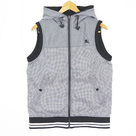 バーバリーブラックレーベル BLACK LABEL ジップアップ ベスト リバーシブル フード 2 ギンガムチェック ブラック D 1 P 18-717-09 sa 6853