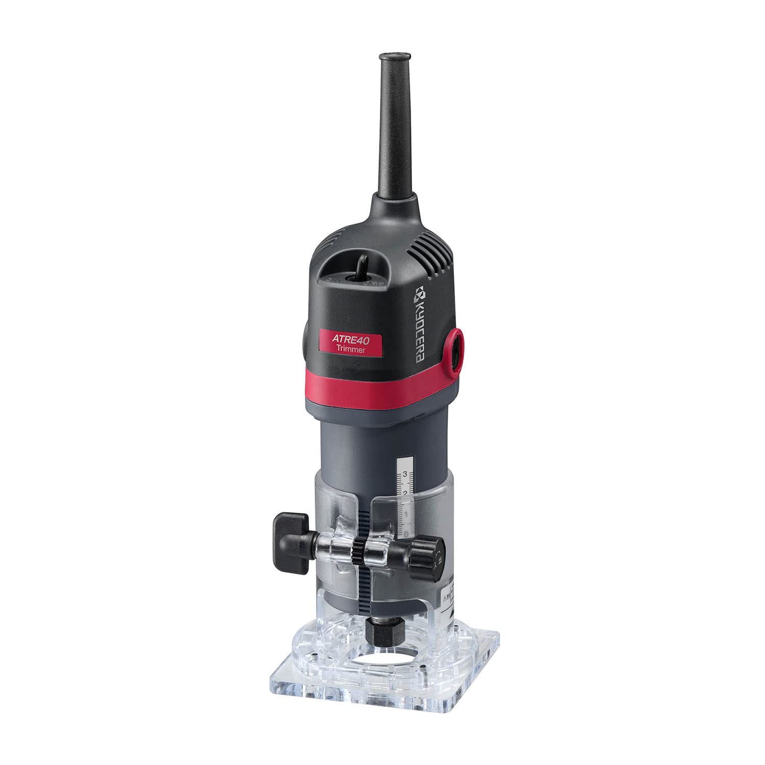 京セラ Kyocera 旧リョービ プロ用 トリマー ATRE 40 628051 A ブラック 起動時の反動が少ないソフトスタート機能搭載 取付ビット軸径6 mm ラック-ピニオン式で切込深さ調整 回転数30000 min-1 細身ボディ