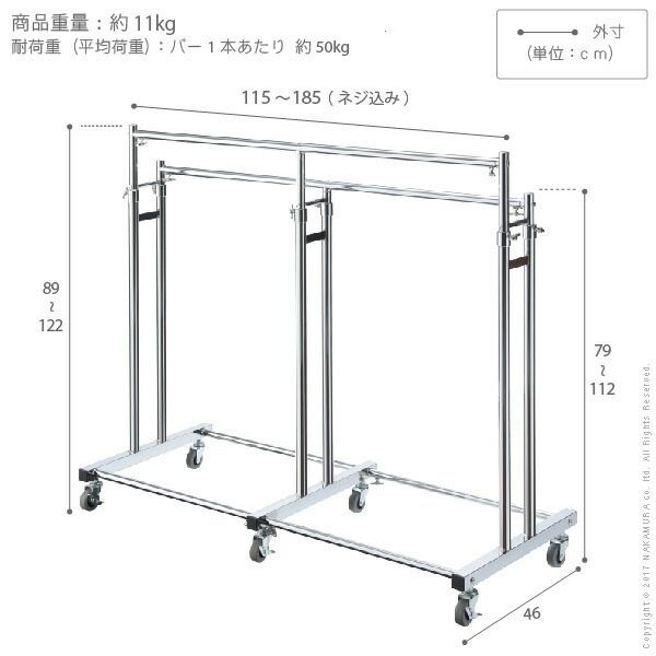 押入れ伸縮頑丈ハンガー[キャスタータイプ]