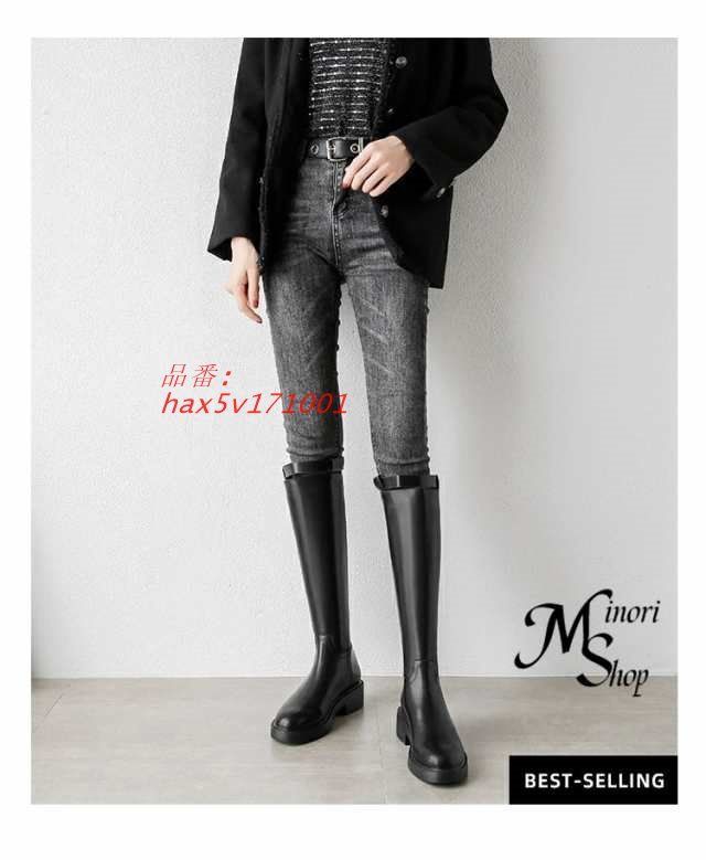 ロングブーツ レディース 厚底 ローヒール 歩きやすい 黒 大きいサイズ サイドストレッチ ワイド 美 長靴 ブーツ ジョッキーブーツ hax 5 v 171001