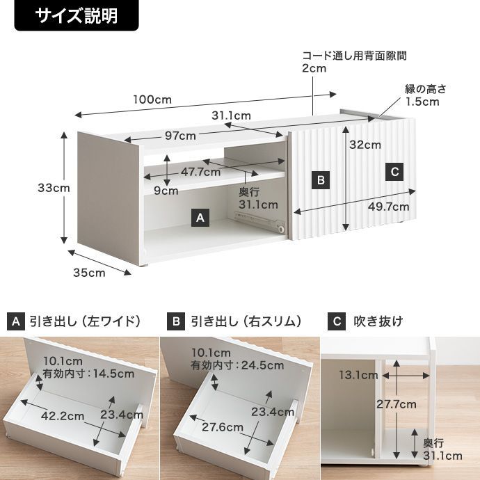 サイズ:幅100cm×奥行35cm×高さ33cm