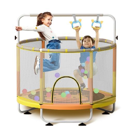 【手すり付き】手すりが付くで、トランポリンから落下を防げ、お子様やご年配の方でも手すりを握りながら跳ぶことで、中心で安定して飛び跳ねることができます。手すりを取り外して使用することもできます。