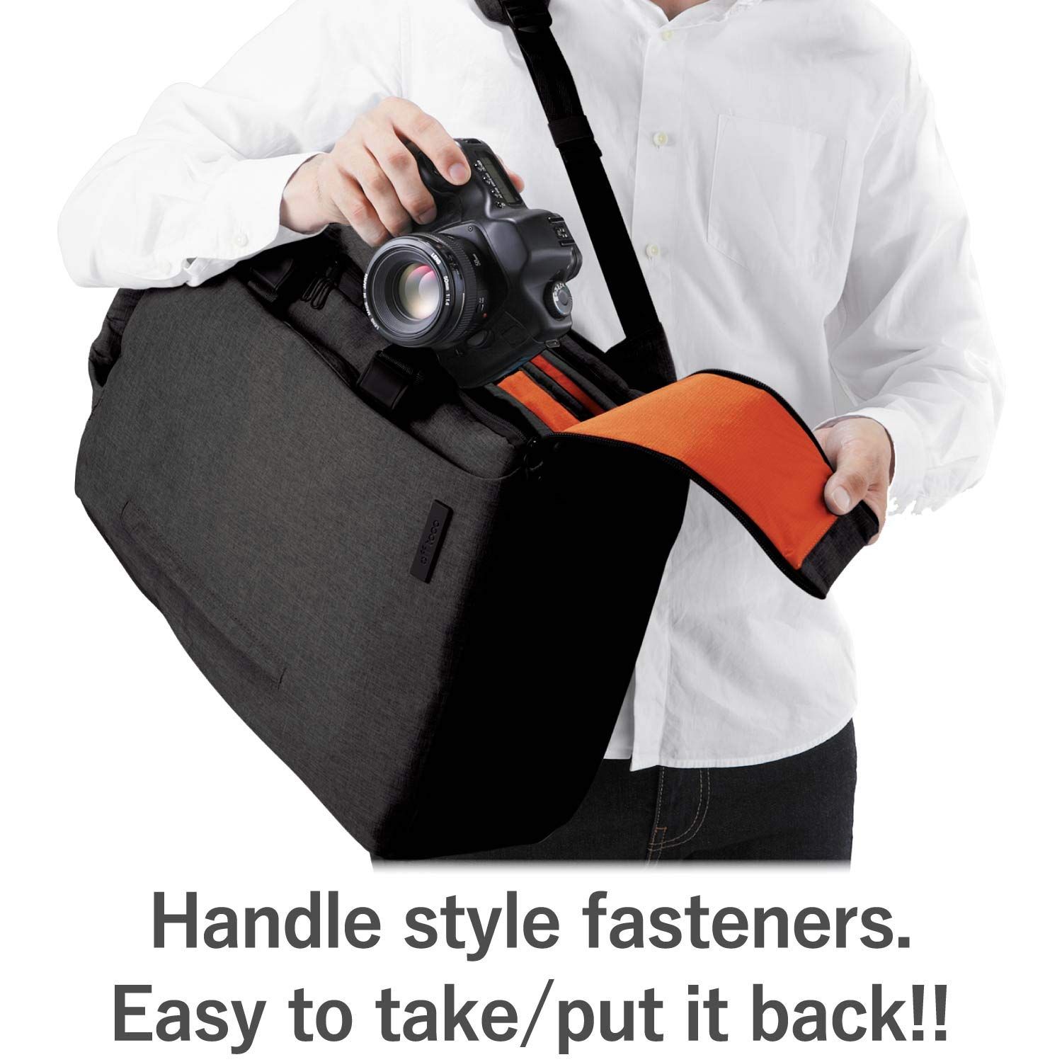 toco"旅行などにも適した大容量のLサイズです。カメラを使用しない時は、インナーボックスを取り外すことで通常のバックパックとして使用可能です。バッグ内部のファスナー仕切りを外すことで、二気室バッグから一気室バッグへ切替えられる二気室貫通構造です。両側面からカメラ・レンズをすぐに取り出せるカメラ専用収納口がついています。バッグをおろさずに素早くカメラ・レンズを取り出し可能です。