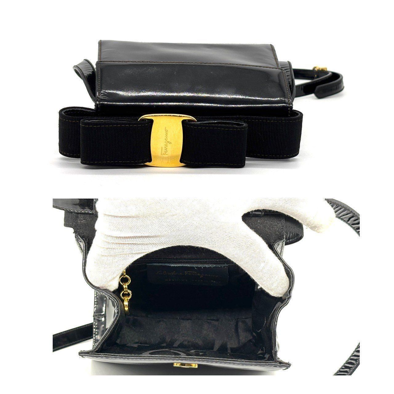 時を超えて咲く 艶のヴァラ Salvatore Ferragamo フェラガモ ショルダーバッグ ハンドバッグ 2 way ヴァラリボン 内側総柄 エナメル ゴールド金具 保存袋付き ブラック