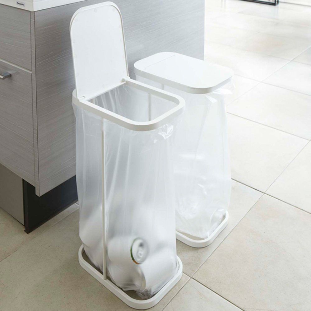 7552 ホワイト ルーチェ キッチン スリム 分別 2 SET ふた付き ゴミ袋ホルダー セット ゴミ箱 山崎実業 YAMAZAKI
