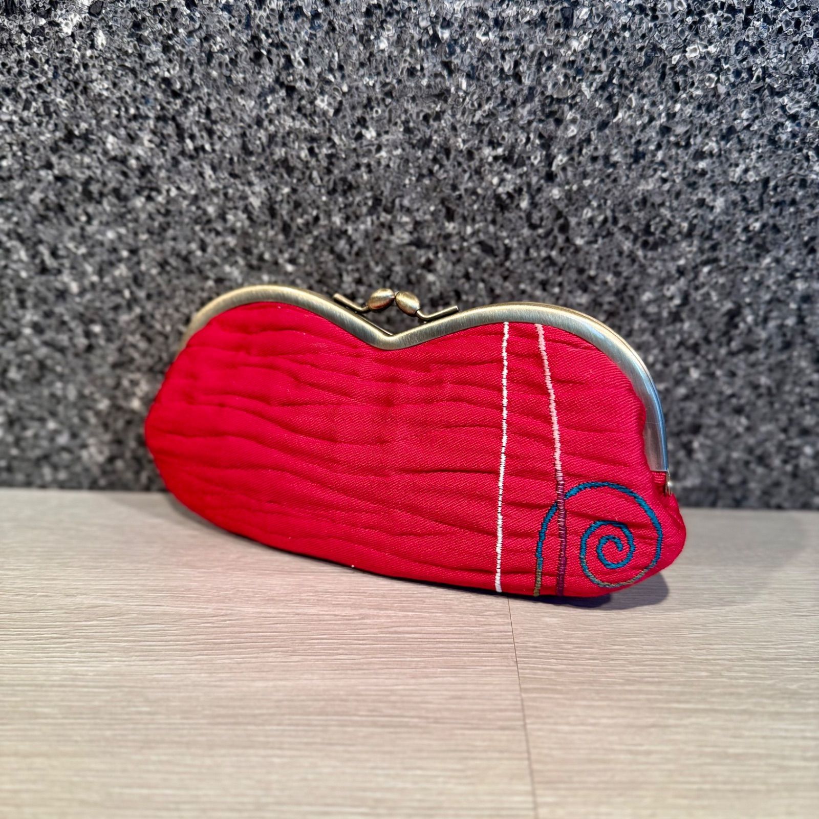 京都帯屋さん 正絹 がま口メガネケース ふくれ地 赤