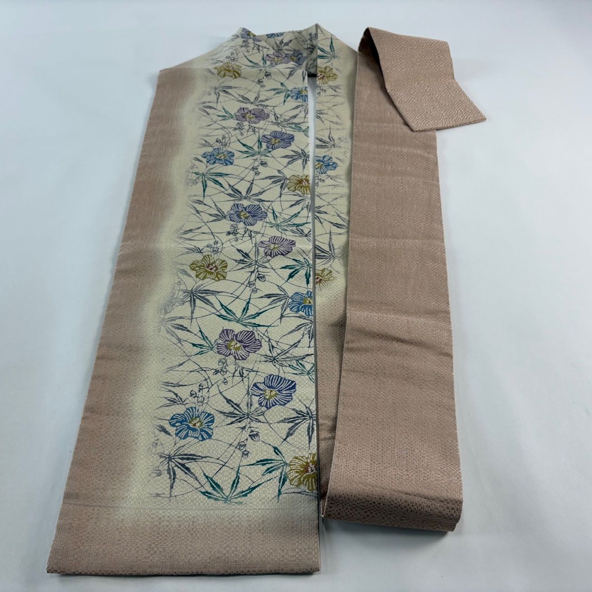 名古屋帯 秀品 草花 金通し 染め分け ベージュ 正絹