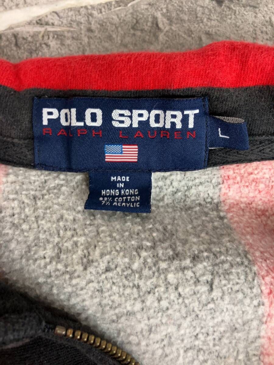 POLO SPORTS ストライプ ハーフジッププルオーバー スウェット レッド ブラック サイズL