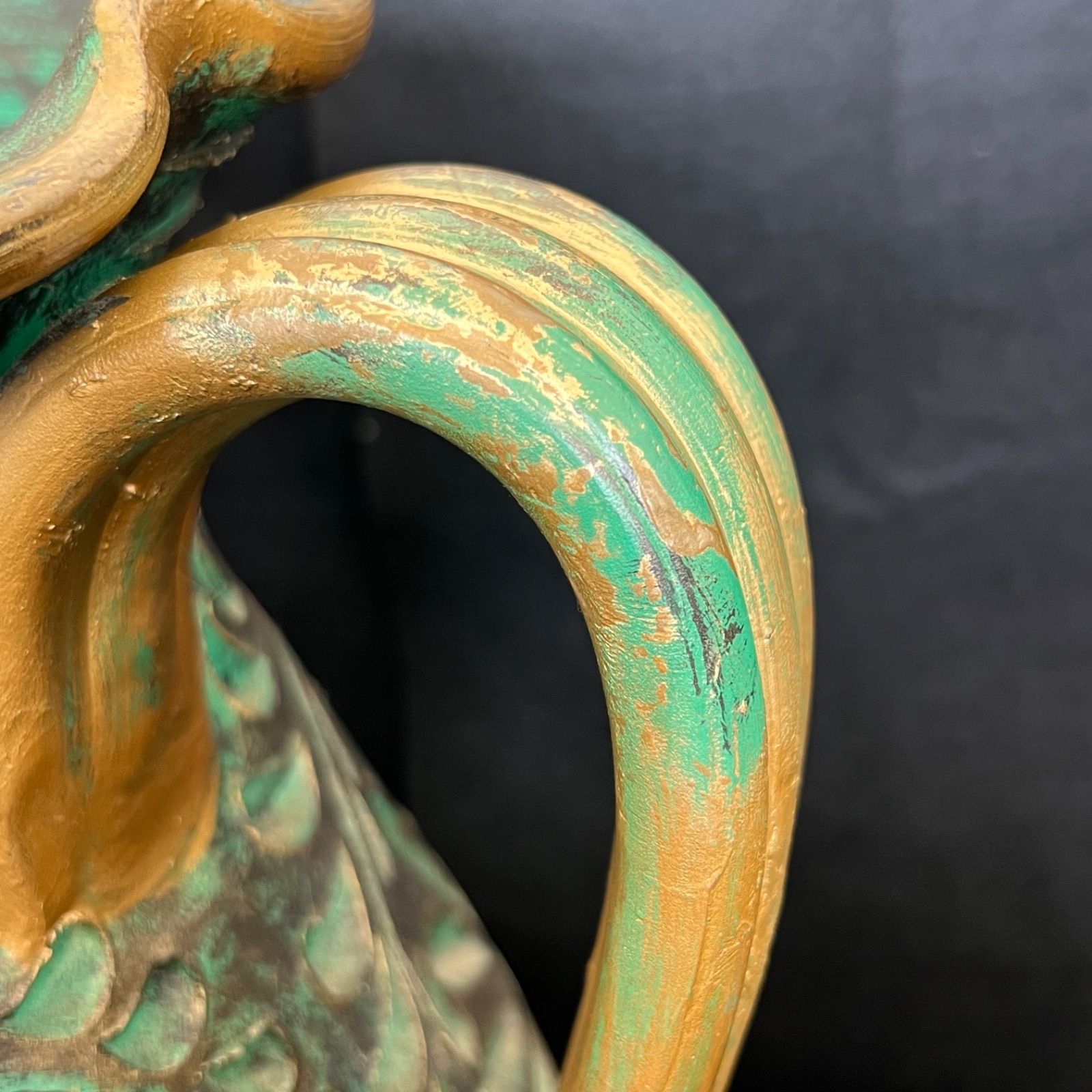 F 陶器製 壺 花瓶 傘立て つぼ 花器 高さ45 cm グリーン×ゴールド