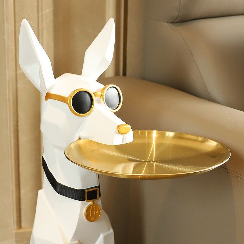 まるで忠実な仲間がトレーを持っているかのような姿勢が、心温まる感覚を呼び起こします。