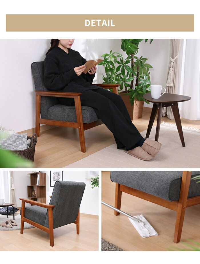 ソファ 1人掛け 1人用 ソファー 椅子 コンパクト 木製フレーム 厚手クッション ファブリック シンプル 感 おしゃれ