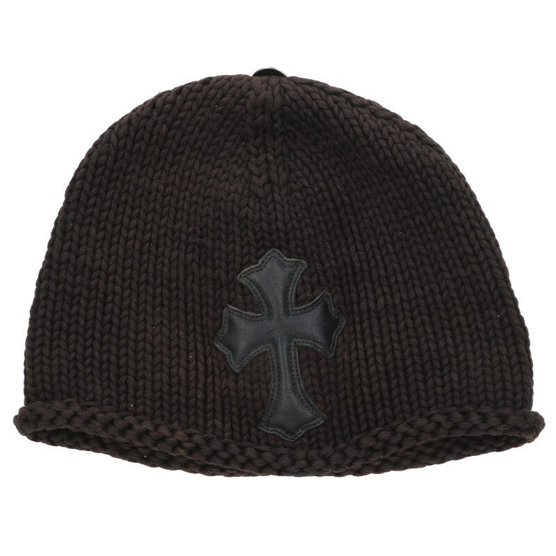 クロムハーツ BEANIE CASH レザーパッチビーニー レザークロスパッチクロスボール付カシミヤ帽子 メンズ