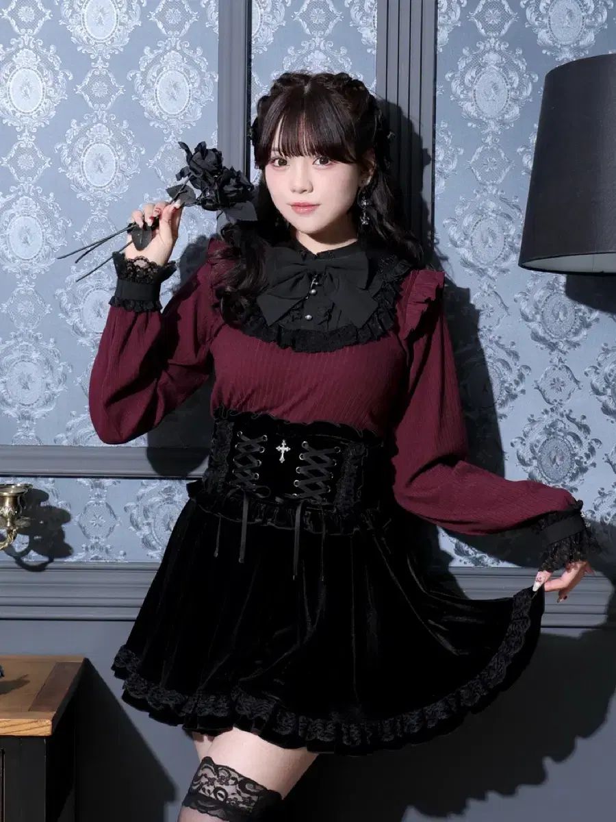 NOEMIE ダブル スピンン ド ゴシック フ ベロア スカーフ版 スカート ブラック 地雷系