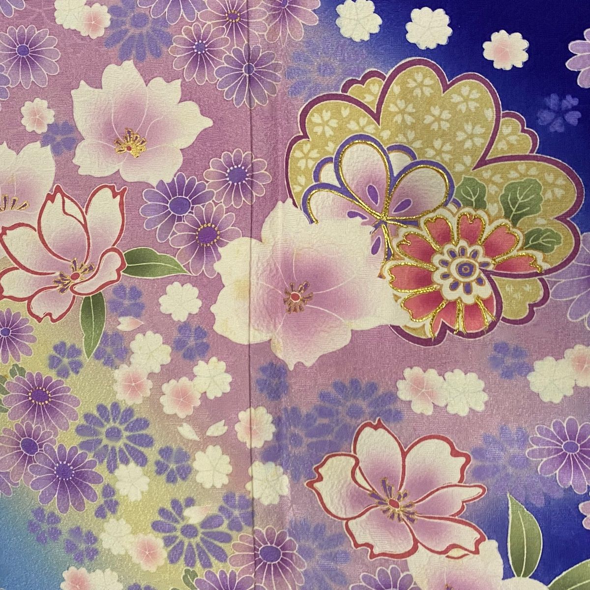 振袖 身丈173.5 cm 裄丈67.5 L 袷 草花 菊 金糸 金彩 青紫 正絹