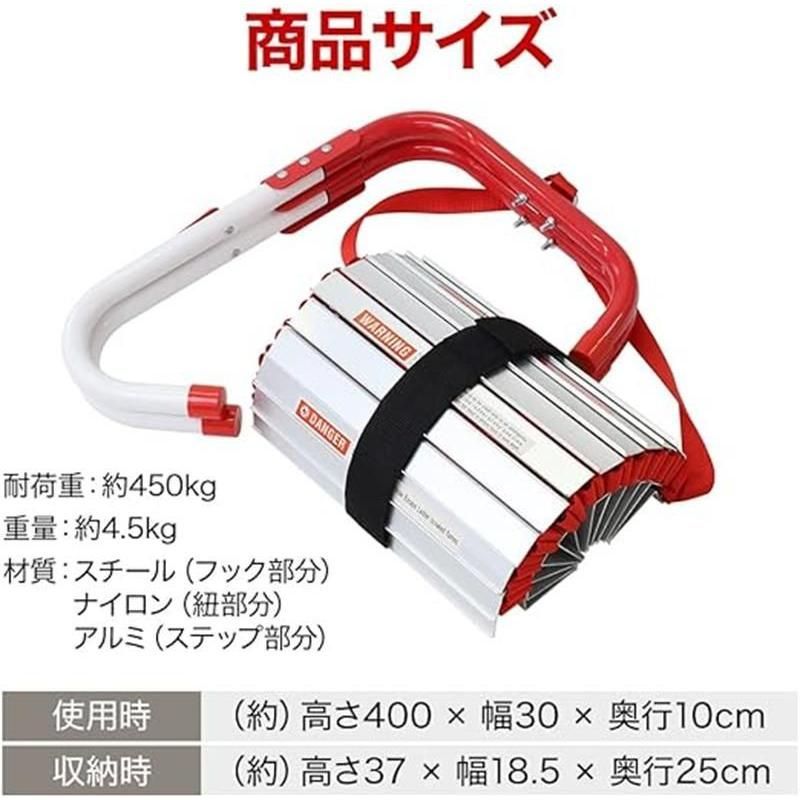 防災はしご 避難用はしご 4 M 2階用 緊急時 アルミステップ ベランダ 軽量 コンパクト収納 折りたたみラダー 引っ掛けはしご