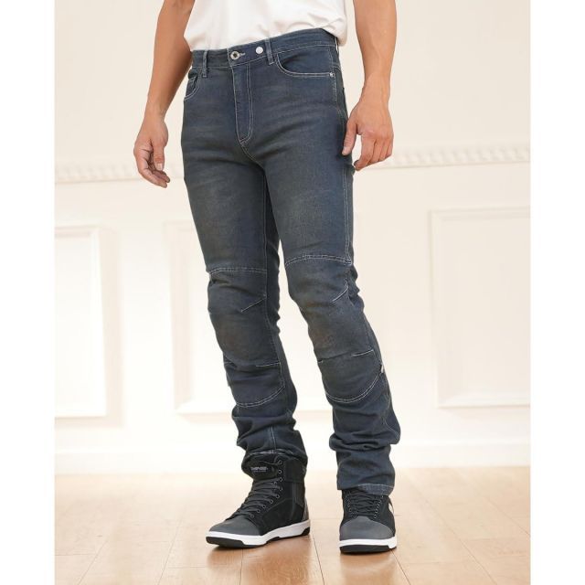 安全性と快適性を両立させたデイリーに使える快適なストレッチジーンズ。乗車姿勢が取りやすい立体裁断を採用。両膝に薄型のCE規格ソフトプロテクターを標準装備し、着脱しやすい外入れ式を採用。裾裏のリフレクターはロールアップすることで使用可能。