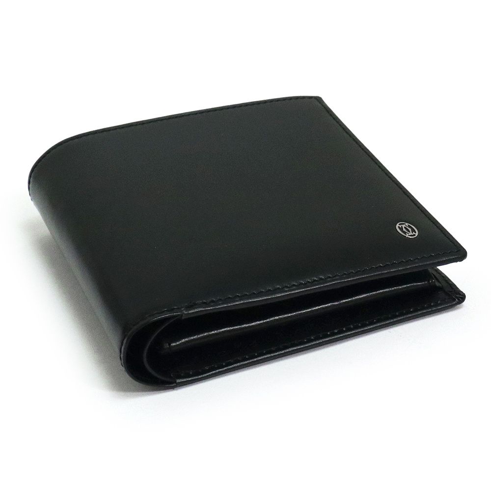 カルティエ パシャ ドゥ 二つ折り財布 カウハイドレザー ブラック シルバー金具 Cartier