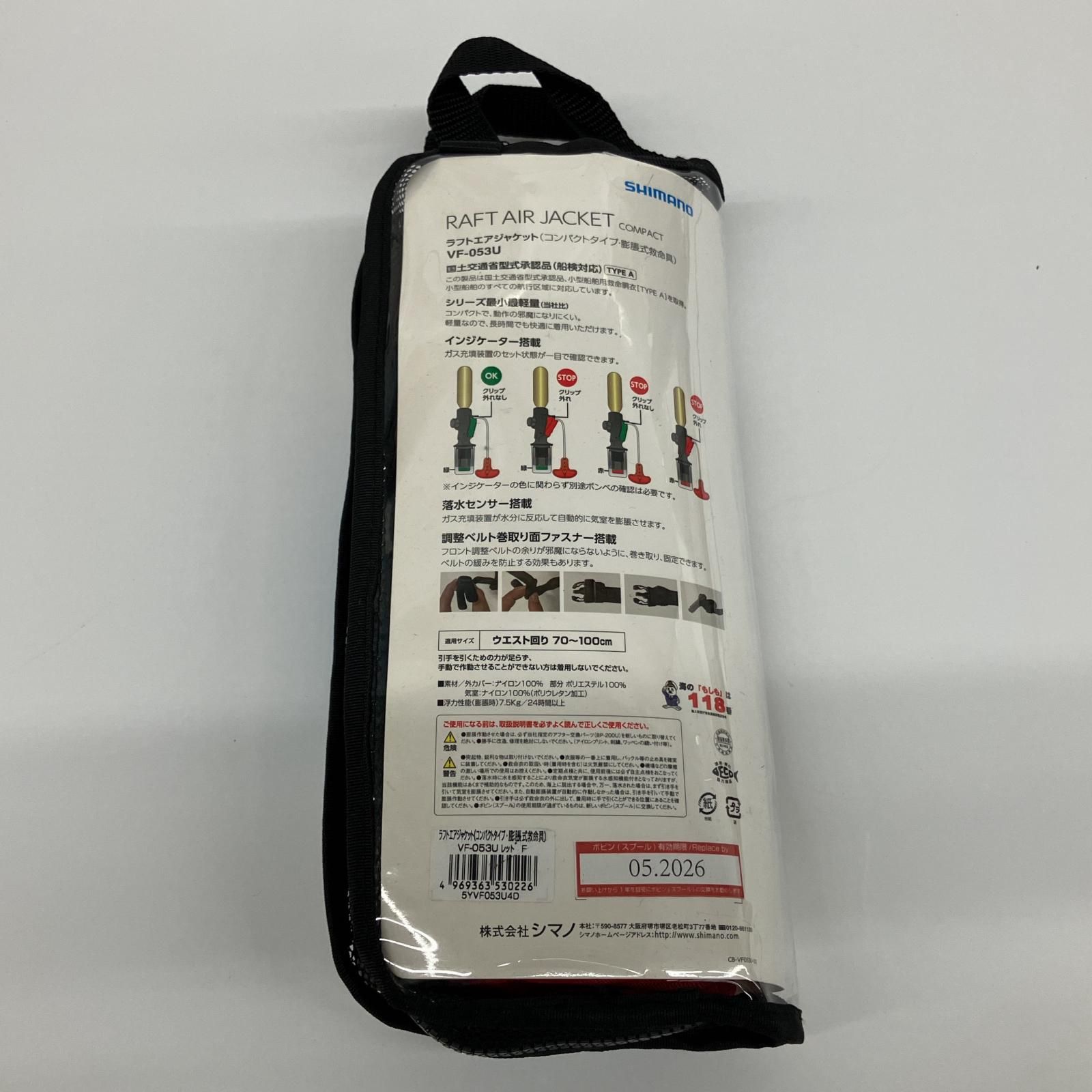 SHIMANO シマノ ラフトエアジャケット コンパクトタイプ 膨脹式救命具 VF 053 U