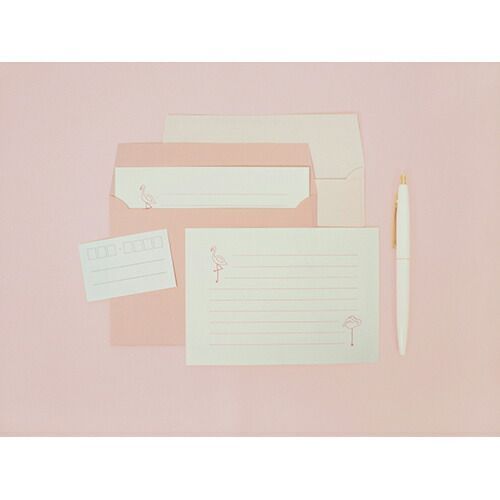 かわいい動物たちのひと休みしているポーズにほっこり癒されるステーショナリーシリーズです。【検索ハッシュタグ】#エルコミューン#レターセット#手紙#便箋#レター#BreakTime#Flamingo