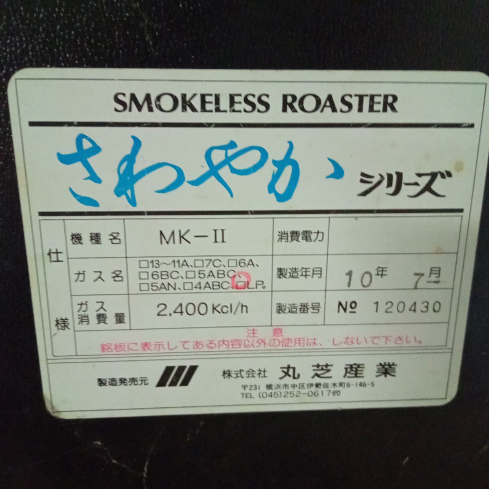 ◯ 無煙ロースター ロースター 焼き肉台 さわやかシリーズ MK-Ⅱ LPガス