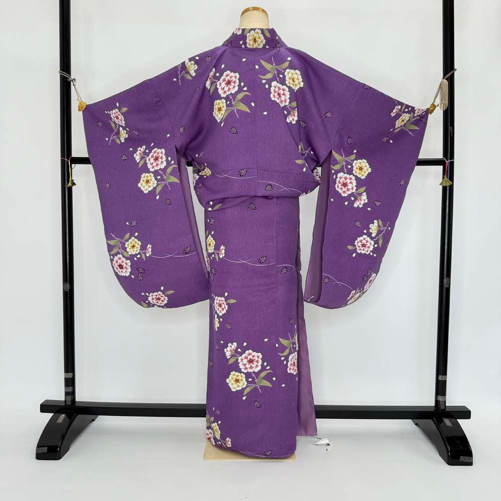 二尺袖 卒業式着物 紫 裄68 cm Lサイズ 袴用着物 化繊 4683