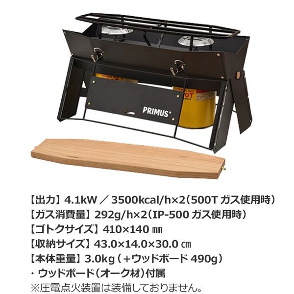 ●ガス消費量:292g/h×2(IP-500ガス使用時)