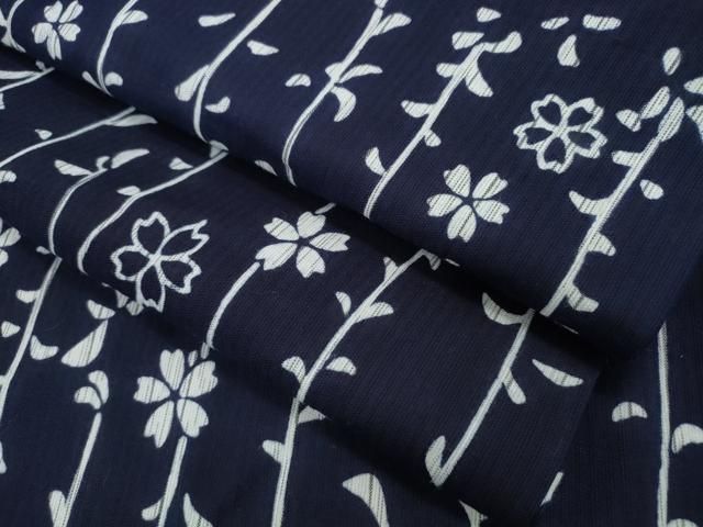 平和屋着物∴夏物 浴衣 縦綿絽 枝花文 綿 ng