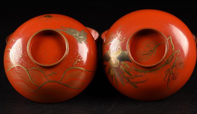 蔵A 3261 b 木製朱塗 絵替蒔絵 吸物椀 汁椀 十客