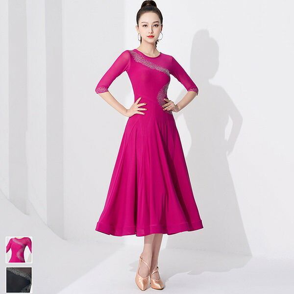 社交ダンス衣装 ワンピース 社交ダンス 広がる裾 ワルツ ステージ衣装 演奏会 発表会用 練習競技 ワルツダンス服 タンゴ 五分袖