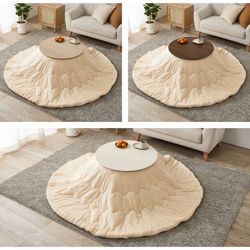 脚は折りたたんで隙間に収納も可能なコンパクト円形こたつ。とろけるような肌触りのシンプルな掛け布団セット