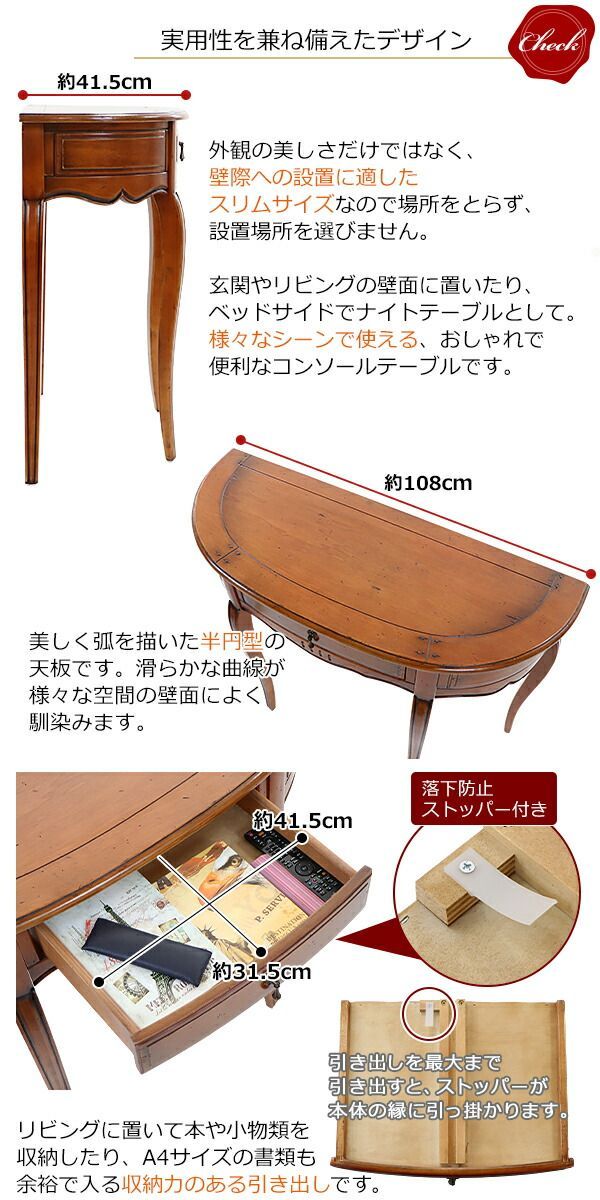 アンティーク調 コンソールテーブル ハーフムーン 半円 約W 108 5 約D 41 約H 85 cm クラシック調 レトロ調 木製 おしゃれ サイドテーブル スタンド 花台 飾り棚 ナイトテーブル 電話台 c antique f 76 選択 ホワイト