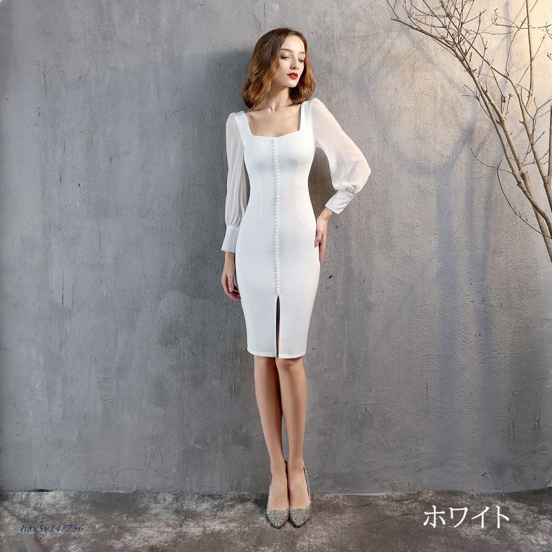 ドレス ミニドレス パーティードレス 結婚式 二次会 発表会 演出 ウェディングドレス 長袖 演奏会 ホワイト ファスナー 前撮り フォーマルドレス サテン hax 5 v 147756