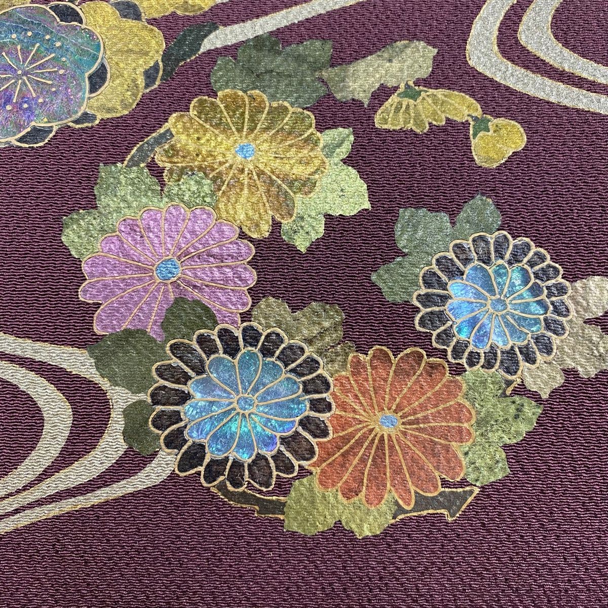 袋帯 梅 菊 金彩 螺鈿 紫 お太鼓柄 正絹