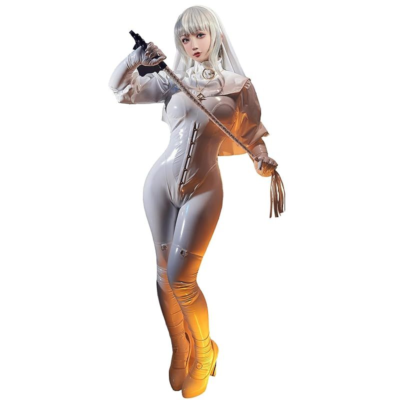 在庫 Miccostumes レディース 大人 かっこいい かわいい Chowbie 修道女風 Nun シスター 小悪魔 悪魔 魔女 ボディスーツ レオタード コスプレ コスチューム 衣装 仮装 変身 変装 ホワイト XL 0